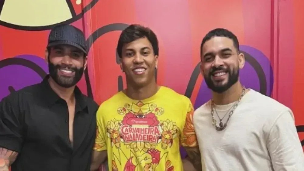 Outra atração que esteve ao lado do camisa 19 foi Henry Freitas, cantor de forró. Na legenda da publicação feita nos Stories do Instagram, Kaio Jorge celebrou o encontro com os artistas.