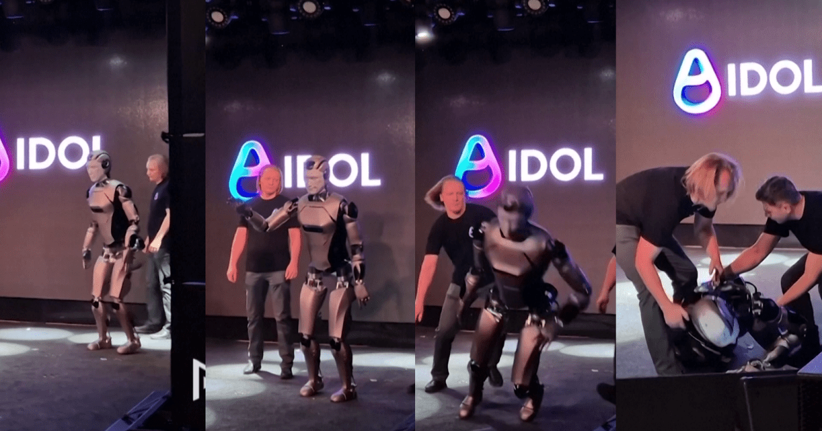 Chamado de AIDOL pelos seus criadores, o robô tentou levantar o braço direito e acenar para o público, mas pareceu perder o equilíbrio e tombou de frente no palco. Dois assistentes humanos que o acompanhavam correram para ajudá-lo a se levantar.