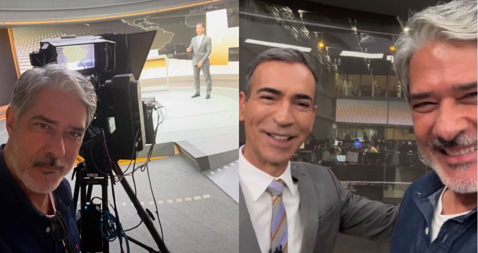 O apresentador do “Jornal Nacional”, William Bonner, 61, esteve nesta segunda-feira (13) no estúdio do “Jornal Hoje”, apresentado por César Tralli, 54. Em um vídeo compartilhado nas redes sociais, Bonner mostra os bastidores do telejornal.